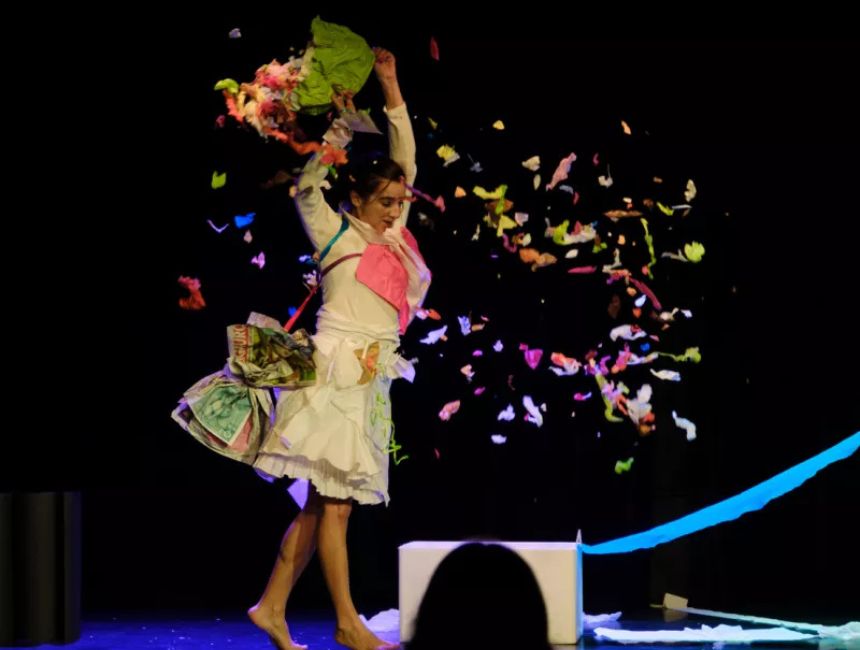 Au tout début, il y a une chambre toute blanche et un drôle de personnage, petite femme de papier blanc vêtue, qui ne s’exprime que par des sons. De 6 mois à 7 ans. Durée 30 minutes