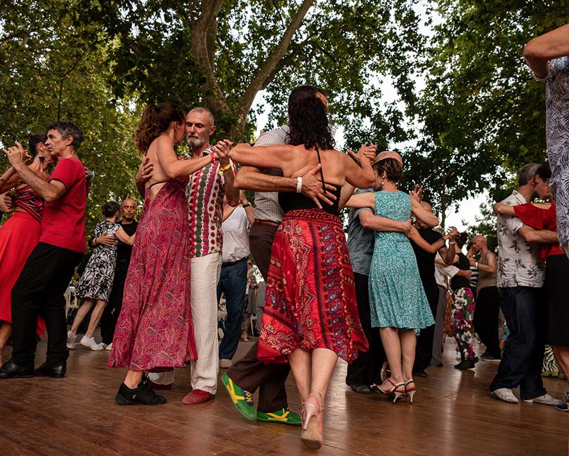 Profitez d’un voyage immersif à la découverte du tango argentin et sa culture sous différentes formes. Au programme : 6 jours de tango en plein sur la place Saint-Pierre, à l’ombre des platanes l’après-midi et sous les étoiles en soirée. 2 jours de clôture au Mas Tolosa avec orchestres en live, une salle principale avec parquet, une seconde salle tradi et une salle néo, un superbe espace extérieur pour la détente. Des soirées de tango traditionnel et néo. Des stages maestros et de nombreux ateliers ainsi qu'une large programmation culturelle (concerts, rencontres, expo, ciné, visite guidée…)