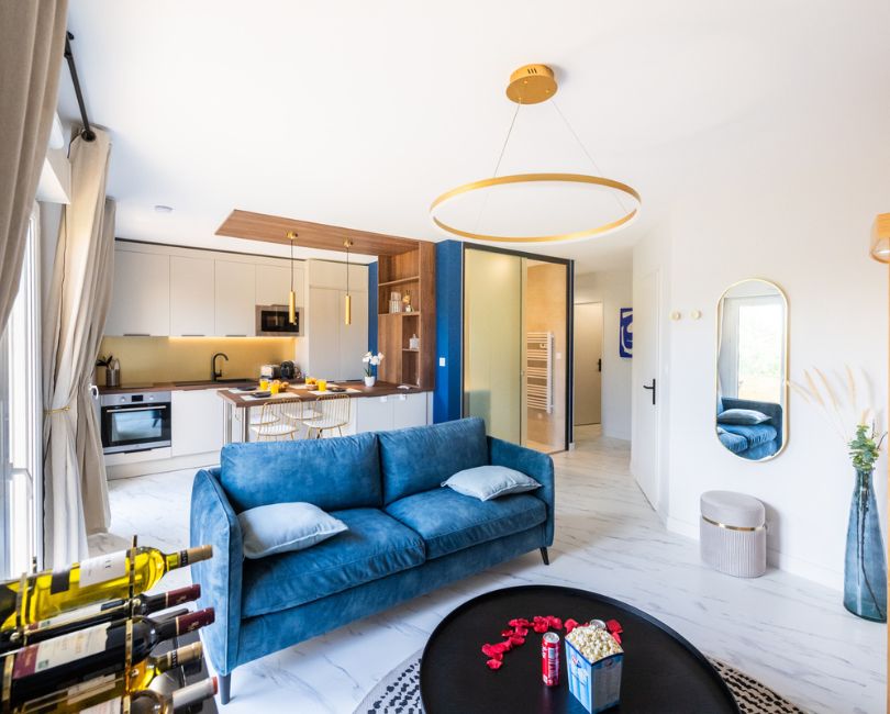 This flat combines comfort, well-being and modernity, with a private sauna for two, a starry sky and a two-seater whirlpool bath for moments of absolute relaxation.