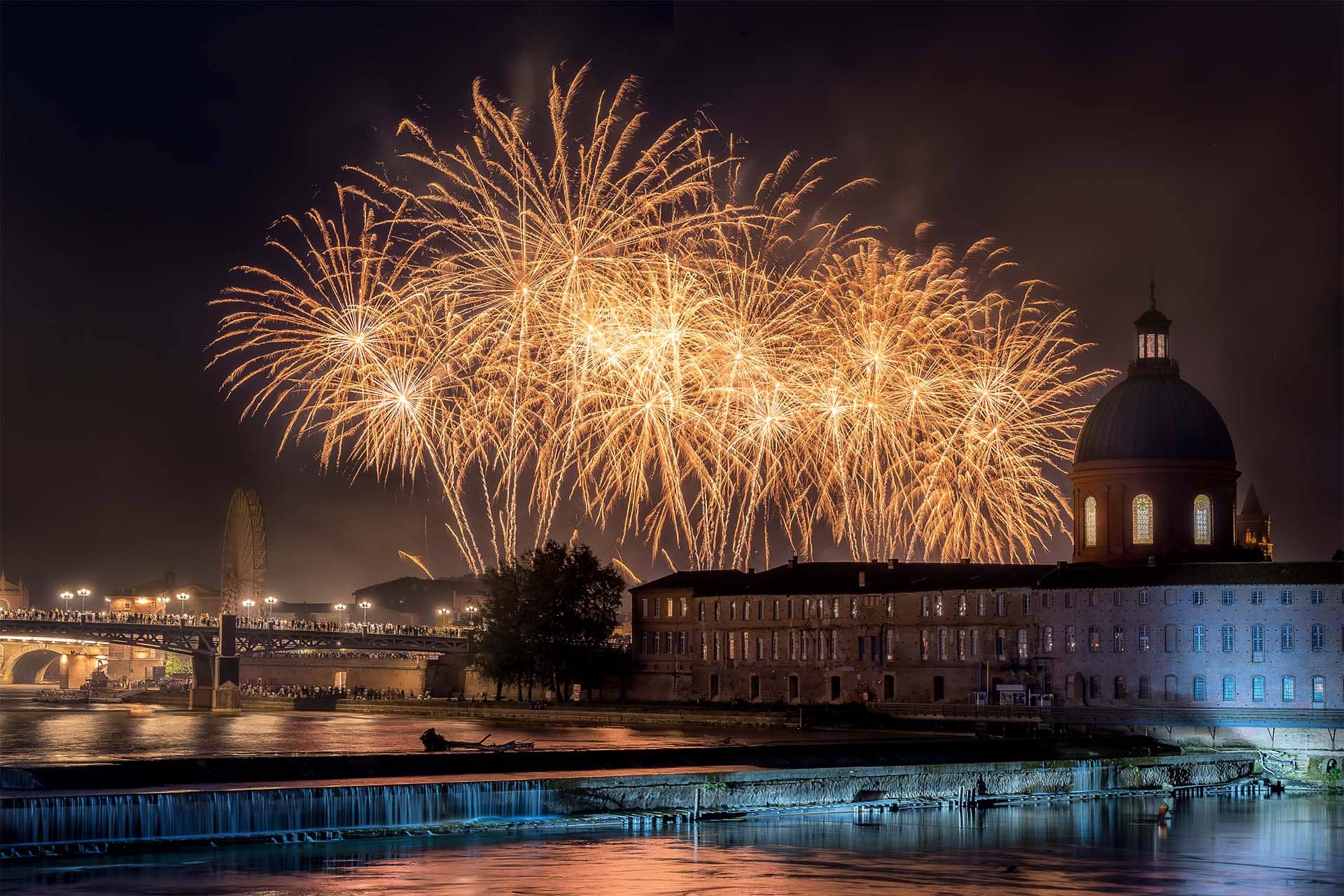 À 22h30, le feu d’artifice sera tiré depuis des barges installées au milieu de la Garonne pour offrir à tous une vue à 360°. Cette année, le feu d’artifice sera tiré en hommage au Tour de France, qui passe à Toulouse du 14 au 16 juillet.