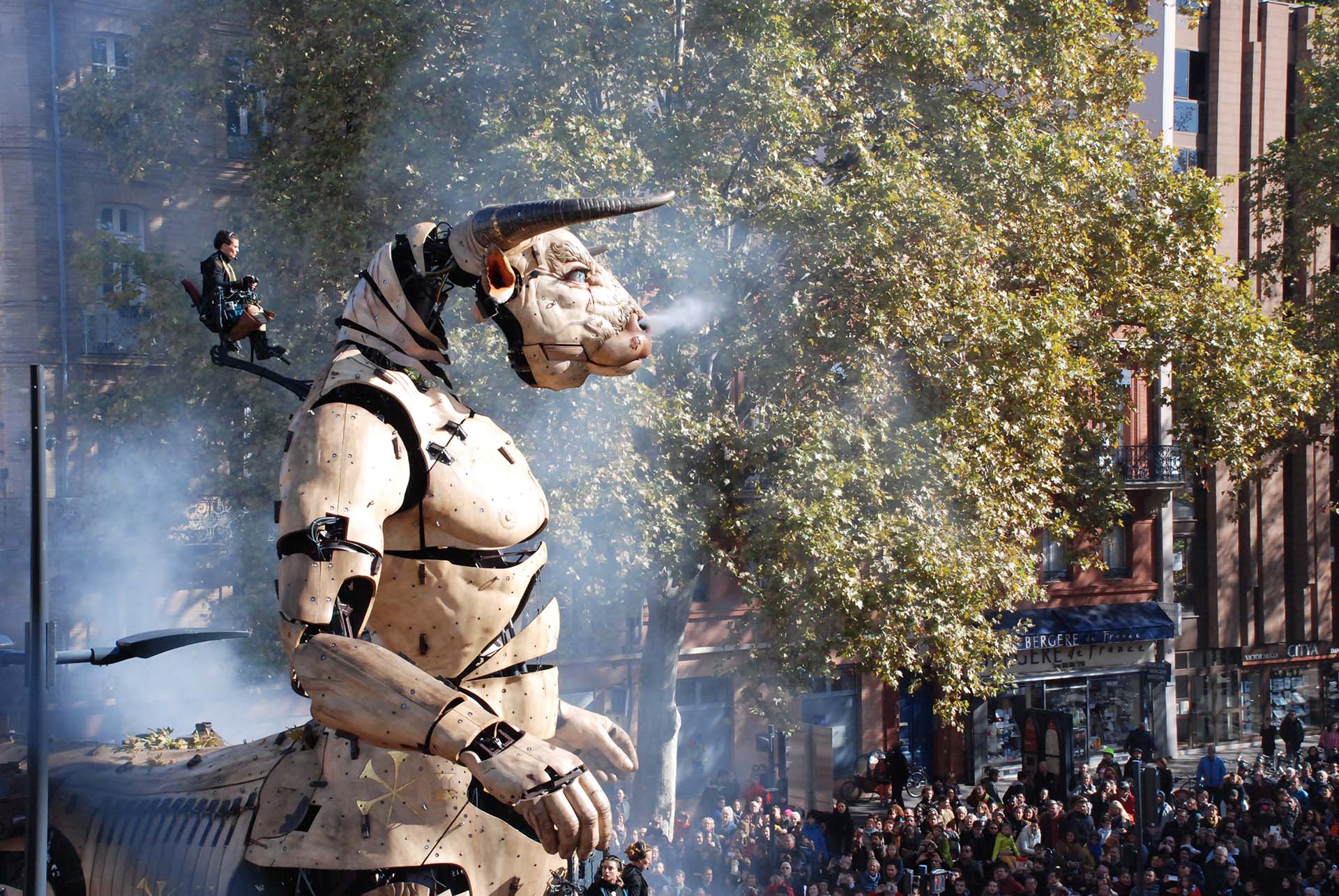 Décollage pour la piste de Géants dans le quartier de Montaudran. Vous vous mettez dans la peau d’un pilote, mécanicien ou encore d’une entoileuse et rejouez l’aventure de l’Aéropostale à l’Envol des Pionniers. Immersion garantie ! Puis vous plongez dans l’univers féerique et poétique de la Halle de la Machine. Pas de chevaux dans l’écurie des Machines mais des machines de spectacle de rue qui réveilleront votre imagination ! Quoi de mieux que de terminer la journée en montant sur le dos d’Astérion le Minotaure !